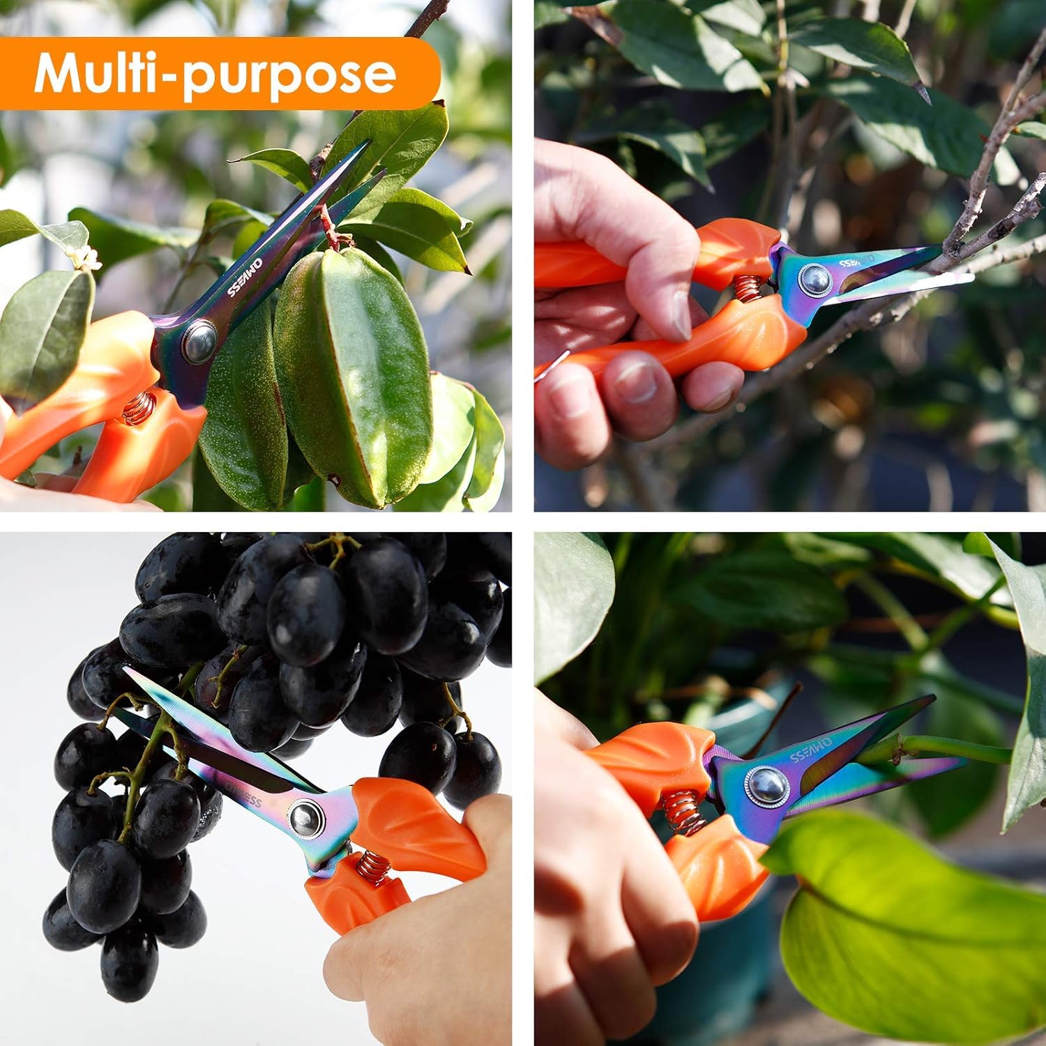 These pruning shears feature precision-sharpened stainless steel blades and come with two blade types to handle a wide range of pruning tasks. Ideal for bonsai, flowering plants, shrubs, herbs, fruit picking, and trimming stalks on vegetable and fruit trees.
